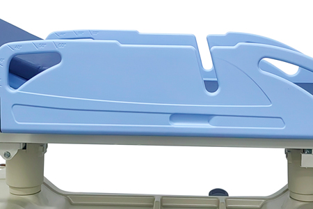 采用新型安全護(hù)欄設(shè)計,當(dāng)護(hù)欄內(nèi)部受力時無法打開,可從外部向內(nèi)部按壓打開護(hù)欄,從而有效地防止了患者從內(nèi)部誤操作,導(dǎo)致墜床事故的發(fā)生,更加安全